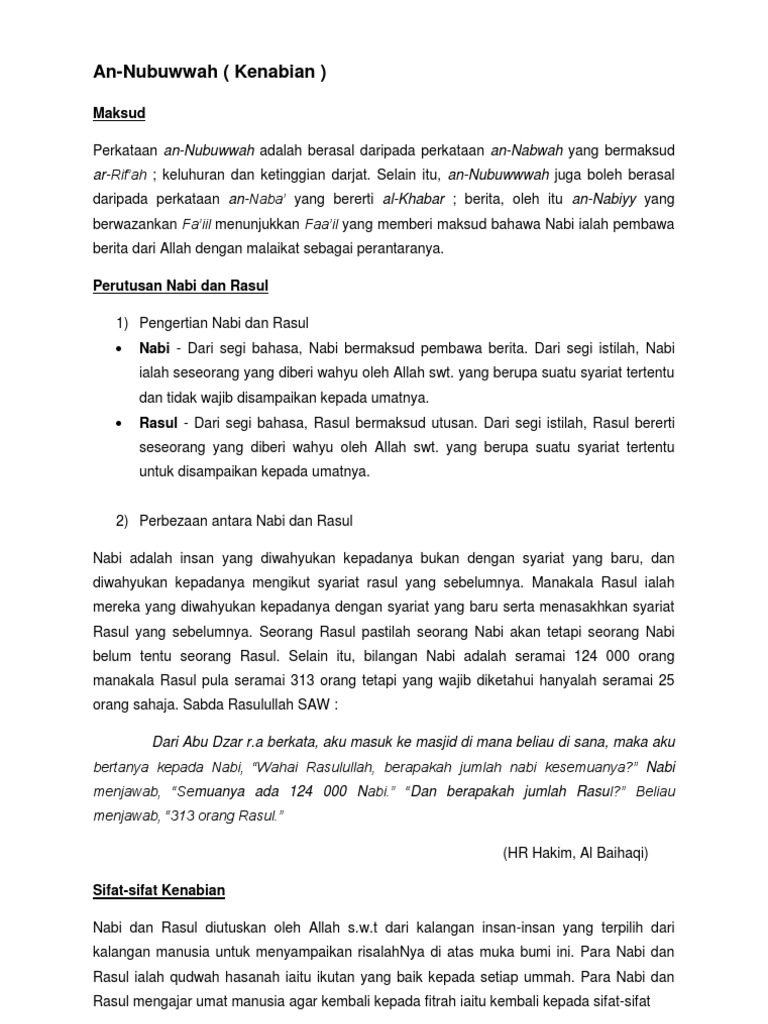 Apakah Perbezaan Nabi Dan Rasul from imgv2-1-f.scribdassets.com Perbezaan hudud & ta'zir antara perbezaan antara jenayah hudud dan ta'zir ialah jenayah hudud ditentukan sendiri oleh syarak terhadap pesalah. Nabi muhammad seorang manusia biasa yg diutus oleh allah sbg 1. Bukan tugas hakim untuk menentukan hukumannya berdasarkan keadaan pesalah atau keadaan jenayah. Rasul dapat menerima wahu melalui mimpi maupun melalui malaikat dan ia dapat melihat serta berkomunikasi secara langsung dengan malaikat. Kemusnahan kota jerusalem allah s.w.t. Dalam islam, nabi (نبي, nabī; Kenabian yg berkaitan (berhubungan) dgn nabi: رسل, rusul), yakni seorang yang mendapat wahyu allah dan wajib menyebarkan ajarannya.